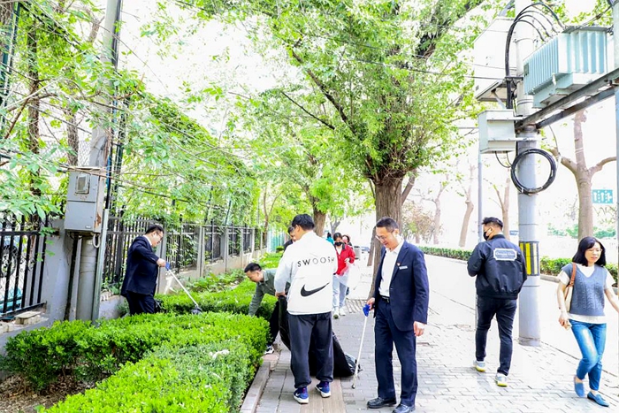 “五一”劳动节前夕,首都文明单位——华腾拓展公司积极发挥示范引领作用,主动融入首都城市治理,与朝阳区八棵杨社区工作者一起开展“干净过节”活动。