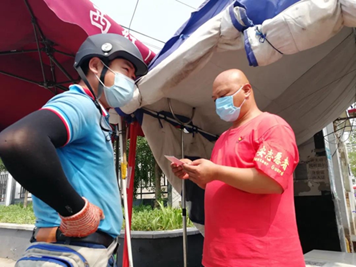 新三余村外来人口较多,进出人流量大,值守检查不能有丝毫的马虎,在做好自身防护的情况下,认真检查进出人员的出入证与身份证、测量体温、并做好登记工作。