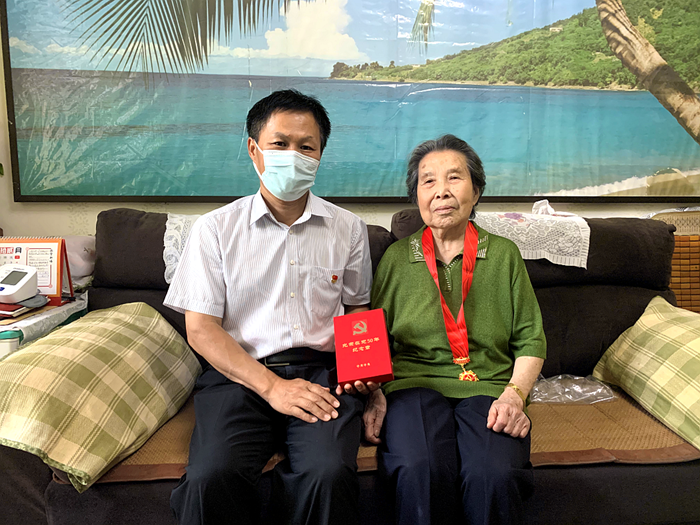 7月1日下午,在中国共产党成立101周年之际,受九游网页版党委委托,党委副书记吴瑞峰带队来到离休干部孙华云家中,向她颁发“光荣在党50年”纪念章。孙华云同志今年已91岁高龄,1946年9月1日参加工作,1972年7月1日入党,是集团原合纤厂工会干部。
