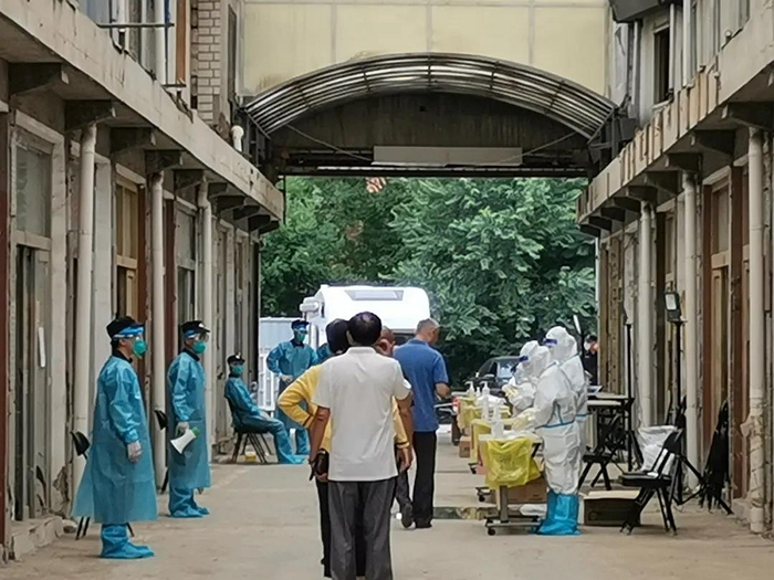 6月22日,丰台区疾控中心、某街道办事处和某社区负责人专程来到环球橡胶厂进行实地考察,最终确定环球橡胶厂厂区作为某地区核酸检测指定场所,并于6月23日下午进场布置。